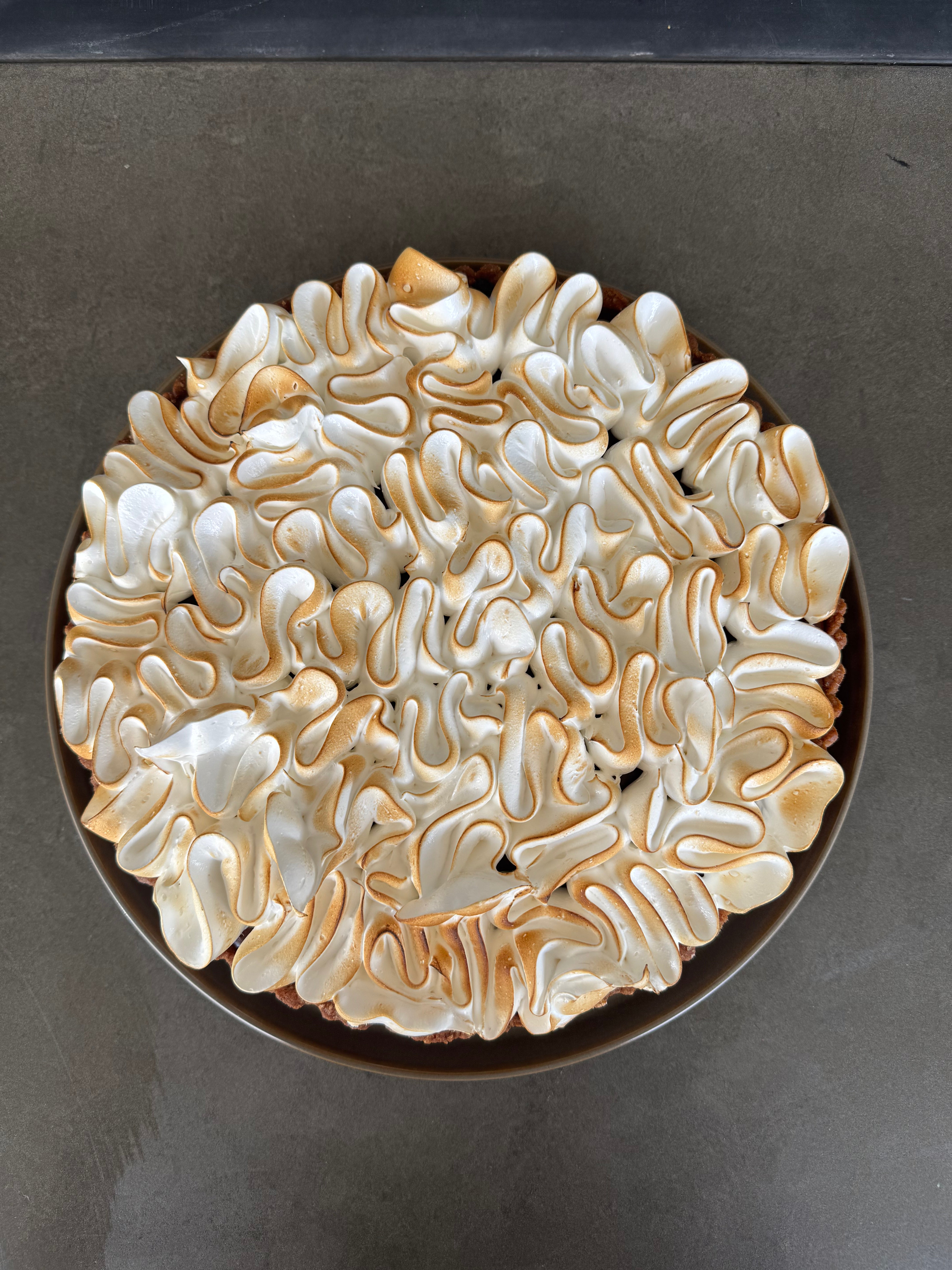 Chocolate cinnamon biscuit base, layered with vanilla salted caramel & chunks of fudge brownie in a dark chocolate mousse topped with torched meringue.